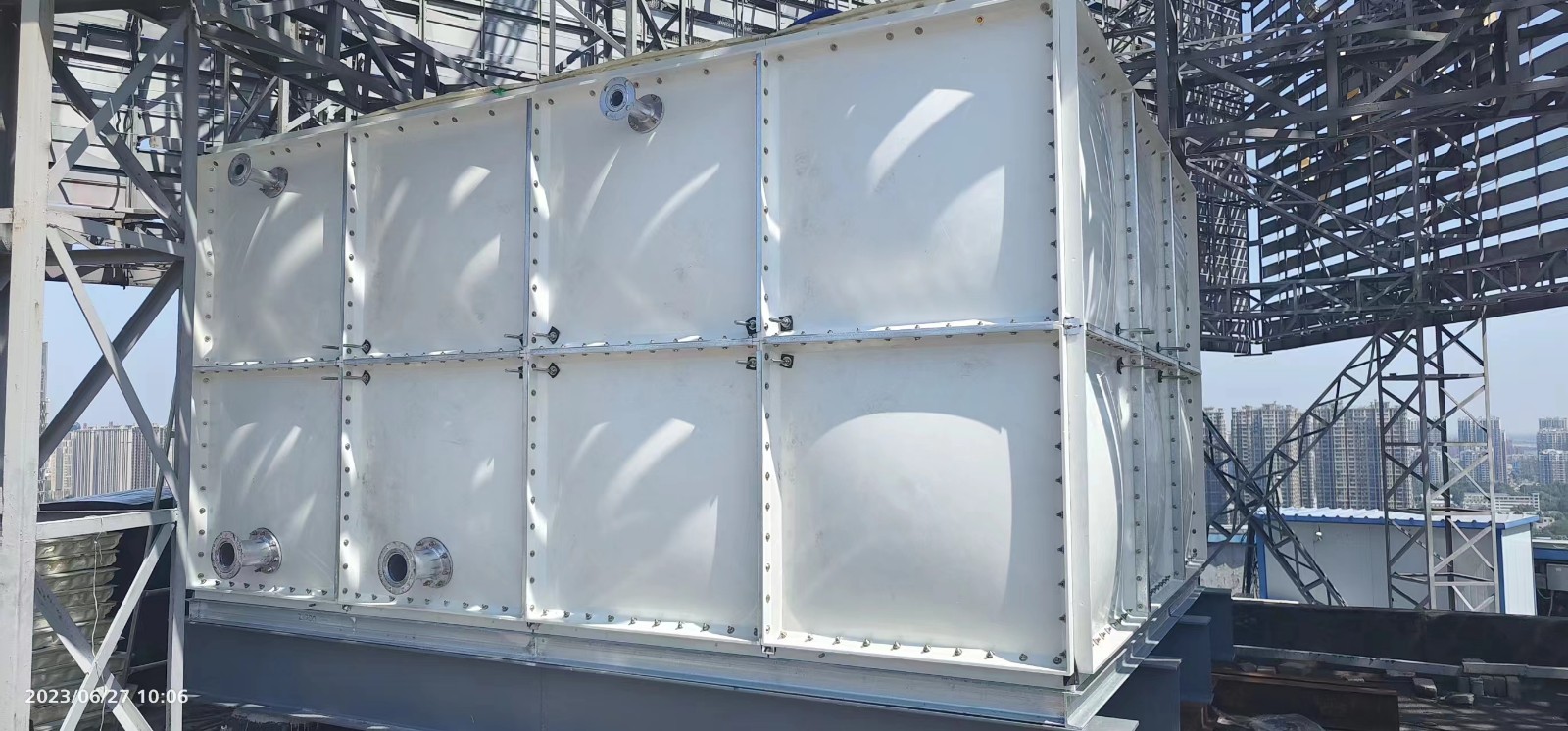 SMC玻璃鋼水箱是一種應(yīng)用于各類(lèi)工業(yè)、民用建筑給水、暖通等的水箱,特點(diǎn)是表面光滑、無(wú)裂紋、焊縫無(wú)氣泡。SMC玻璃鋼水箱是指用玻璃鋼做為原材料加工而成的水箱。