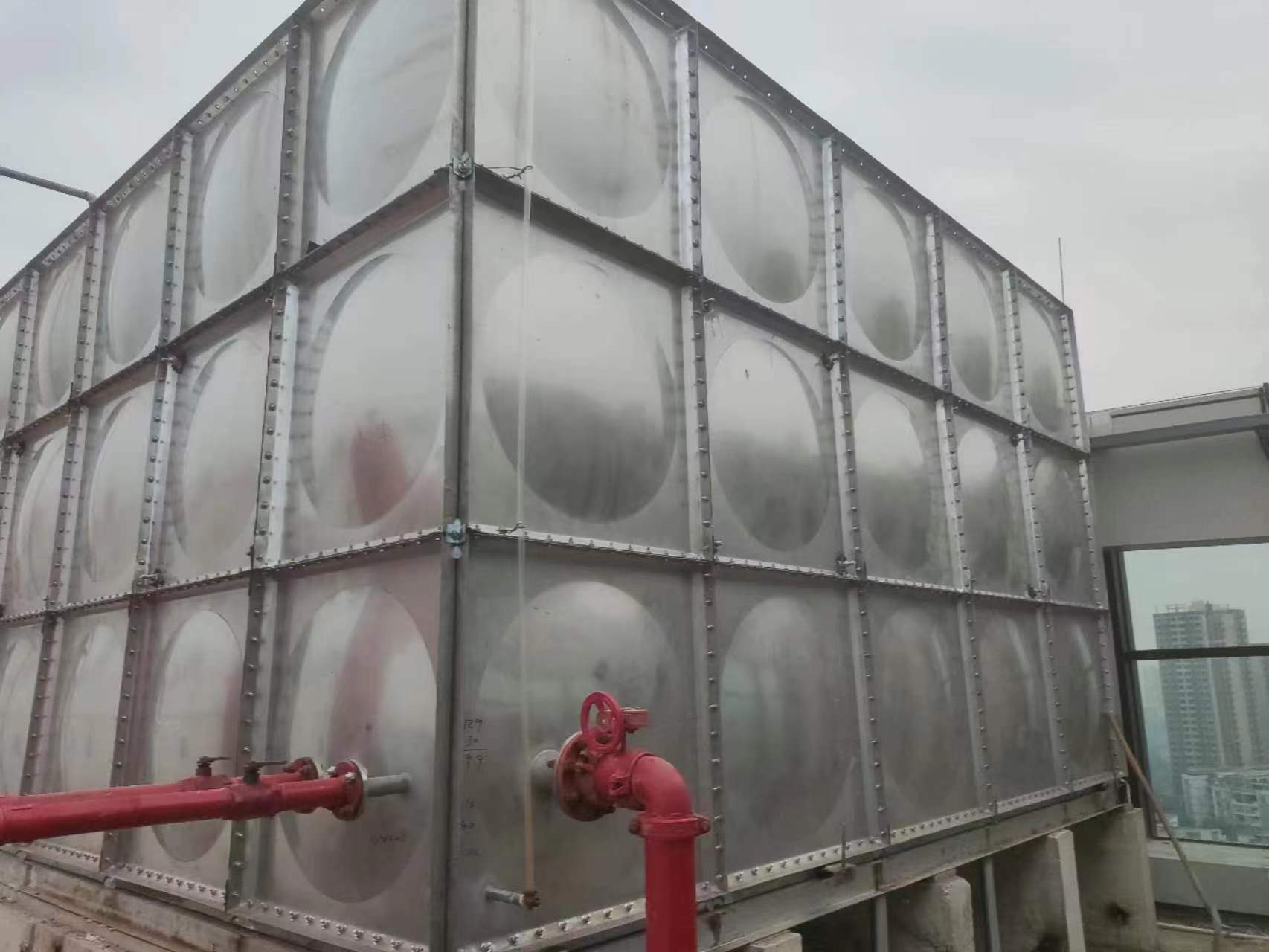 一樣。鍍鋅鋼板水箱的板塊均由鍍鋅鋼板組裝 , 用槽鋼底架支撐箱底 , 內(nèi)用熱鍍鋅拉筋加圖 , 塊之間