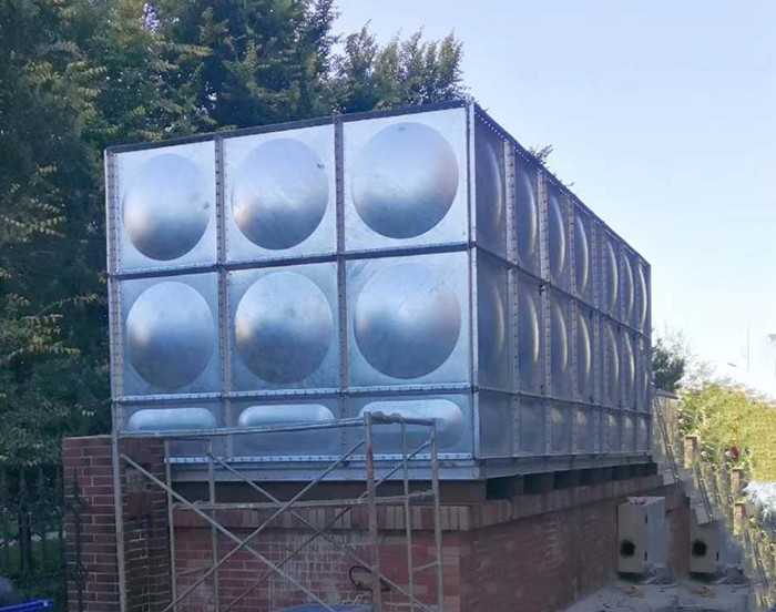 鍍鋅鋼板水箱是按照02S101制造生產(chǎn)的新型裝配式水箱,采用Q235鋼板,沖壓形成1000*000和1000*500 500*500的標準塊,周邊鉆孔,經(jīng)鍍鋅處理,現(xiàn)場進行組裝,組裝時標準塊之間硅膠密封,螺栓連接。該水箱制造、安裝均不受土建施工影響,不用焊接設(shè)備,表面采用熱鋅防腐處理,美觀,以免水質(zhì)二次污染,并符合建筑產(chǎn)品標準化、系列化、工廠化要求。